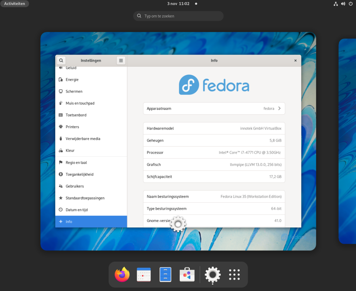 Fedora in VirtualBox (klik op de afbeelding voor een grotere weergave)