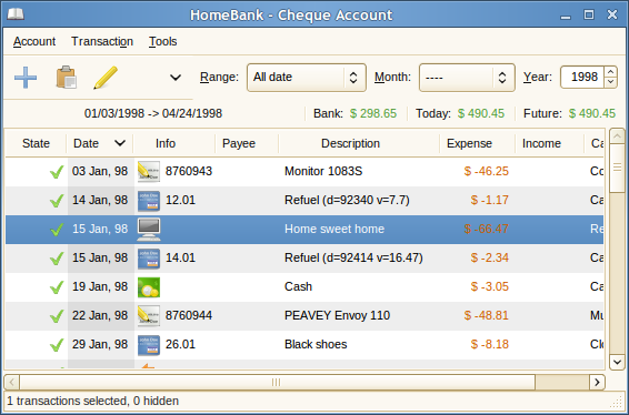 HomeBank is een handig programma voor het bijhouden van je persoonlijke boekhouding. HomeBank kan een overzicht geven van verschillende betaal- en spaarrekeningen, transacties bijhouden en rapporten en grafieken over inkomsten en uitgaven produceren.