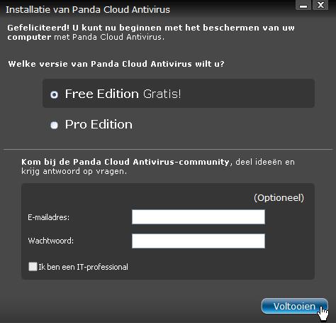 Maar wat ik ook vreemd vond is dat er bovenaan ''panda cloud antivirus pro'' stond na installatie.