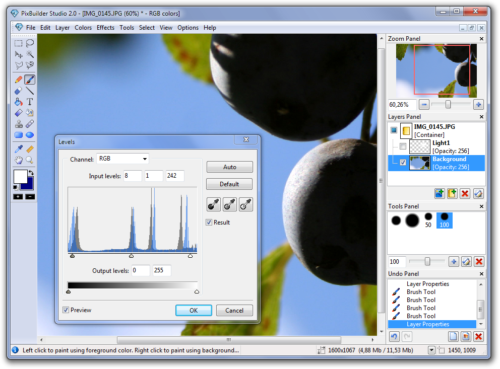 PixBuilder Studio is gratis fotobewerkingssoftware die een beetje lijkt op Paint.NET (alleen dan zonder het .NET framework). Met PixBuilder kun je op eenvoudige wijze bijna alles met afbeeldingen doen, zonder dat je je toevlucht tot ingewikkelde programma's als GIMP hoeft te nemen. Het programma ondersteunt bovendien lagen (layers).