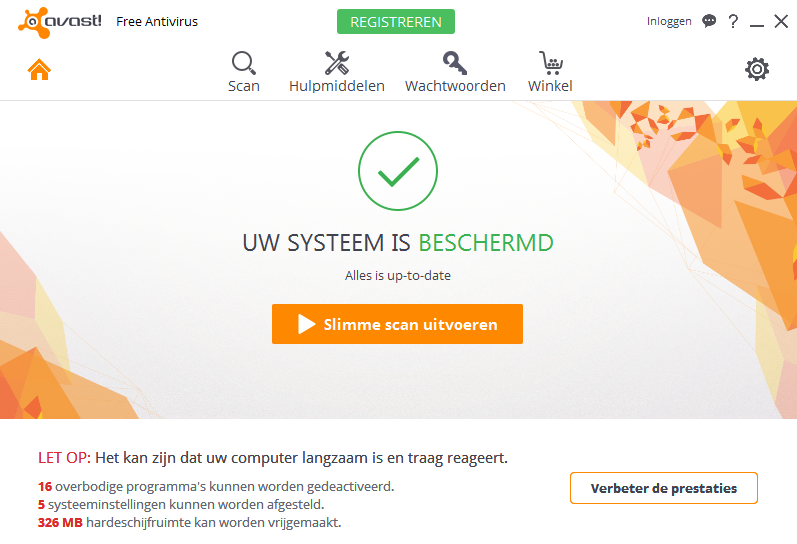 Je moet Avast na dertig dagen gratis registreren. Let goed op bij de registratie en laat je niet de betaalde versie aansmeren!