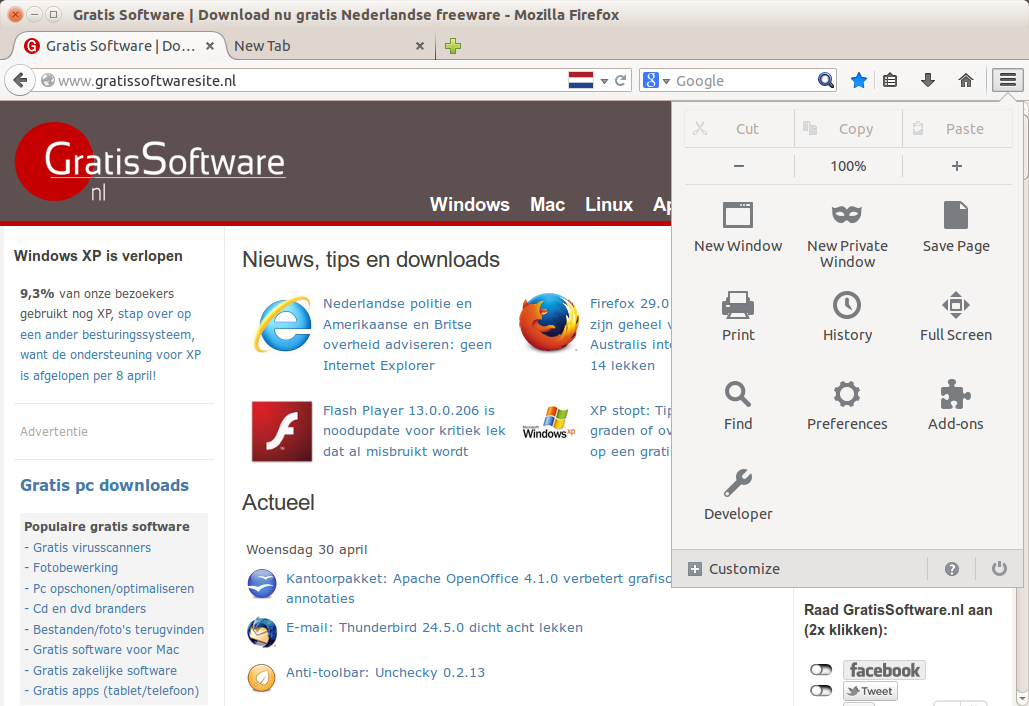 De nieuwe Australis-interface van Firefox heeft wel iets weg van Chrome met zijn menu rechtsboven met drie horizontale strepen en de afgeronde tabbladen. Het credo is: meer ruimte voor de websites en minder voor de interface van de browser. De oranje Firefox-knop linksboven verdwijnt definitief met deze uitgave.