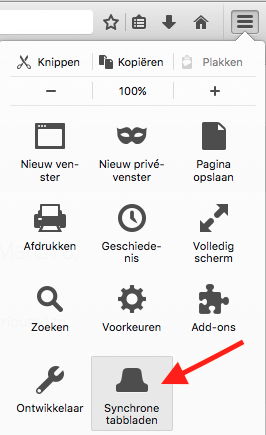 In deze uitgave kun je synchrone tabbladen, die je open hebt staan op andere apparaten met Firefox (desktop, laptop, tablet, smartphone), bekijken met een knop in de menubalk. Als deze Synchrone tabbladen-knop niet zichtbaar is dan kun je die naar de menubalk slepen vanuit het driestreepjes-menu rechtsboven (of gebruiken vanuit het driestreepjes-menu). In de adresbalk (awesome-bar) zijn de synchrone tabbladen ook zichtbaar als je zoekt.
