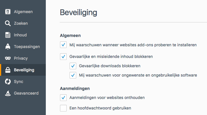 Nieuw in deze uitgave is een verbeterde bescherming tegen schadelijke downloads. Firefox maakt - net als Chrome - gebruik van de Safe Browsing service van Google. Deze beveiligde altijd al tegen kwaadaardige downloads (virussen, malware) maar ook tegen potentieel ongewenste software (adware, toolbars) wordt nu gewaarschuwd. Een andere categorie waartegen je beschermd wordt is ongebruikelijke downloads. Software die niet veel gedownload wordt kan een gevaar vormen als het bijvoorbeeld een fake versie van VLC media speler is die je probeert te downloaden. De echte VLC wordt natuurlijk veel gedownload dus daarvoor krijg je de waarschuwing niet, maar een valse VLC kent niet zoveel downloads en kan een waarschuwing opleveren. Nadeel van het waarschuwen voor ongewone downloads is dat legitieme maar niet zo populaire downloads hier ook last van hebben. Je kunt overigens zelfs instellen waarvoor Firefox moet waarschuwen onder Opties | Beveiliging.