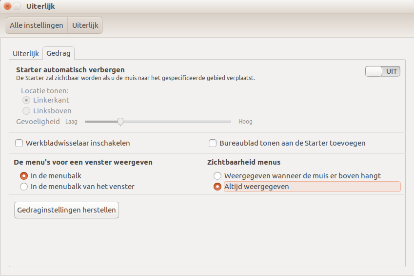 Starter onderaan met de Unity Tweak Tool