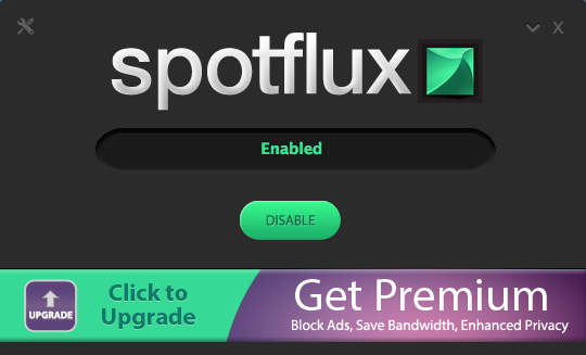 Spotflux Free heeft als nadeel dat er advertenties onderin uw browser getoond worden (en dat het internetten vaak wat trager verloopt). Als u geen reclame wilt kunt u upgraden naar de betaalde versie.