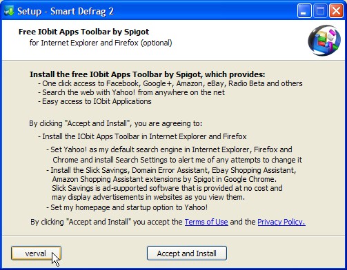 1. Klik op - het vreemd vertaalde - verval (afwijzen) als je gevraagd wordt om de IObit Toolbar van Spigot te installeren, want die wil je echt niet.