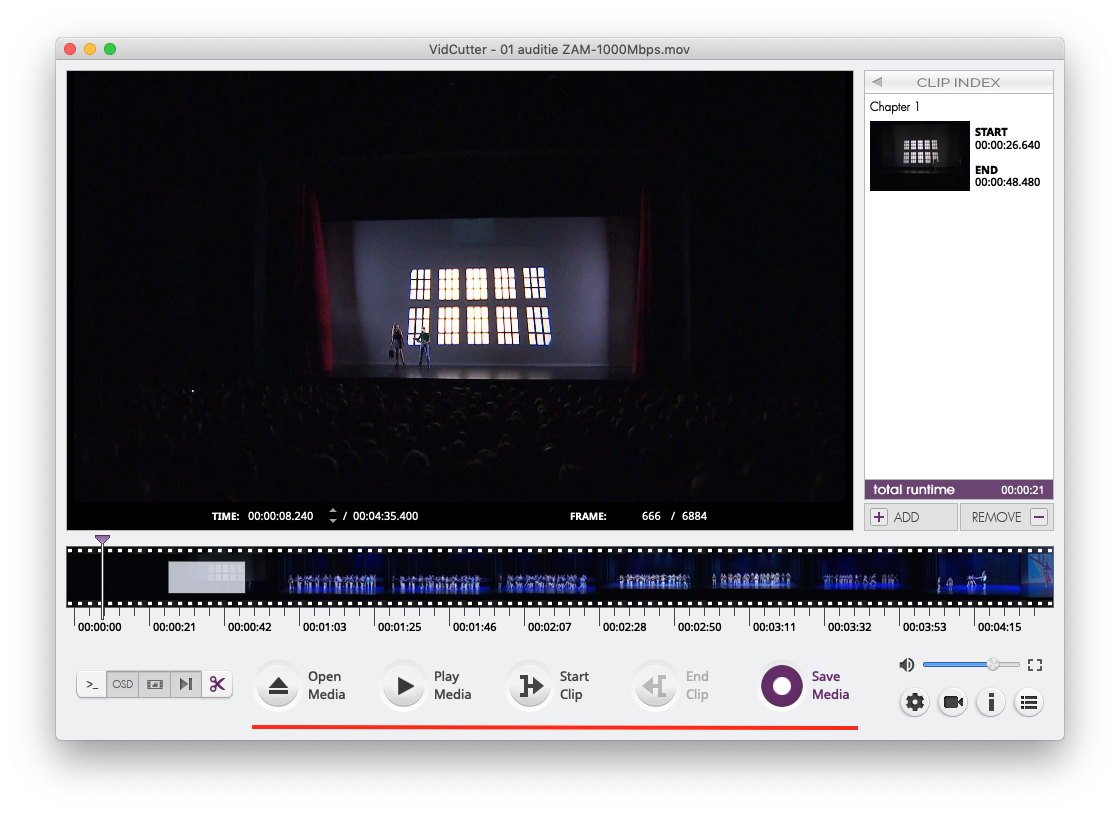VidCutter is een goed uitziende applicatie om fragmenten uit video's of films te knippen. Zo kun je lange video's inkorten, fragmenten selecteren of delen (bijvoorbeeld reclame) weghalen.