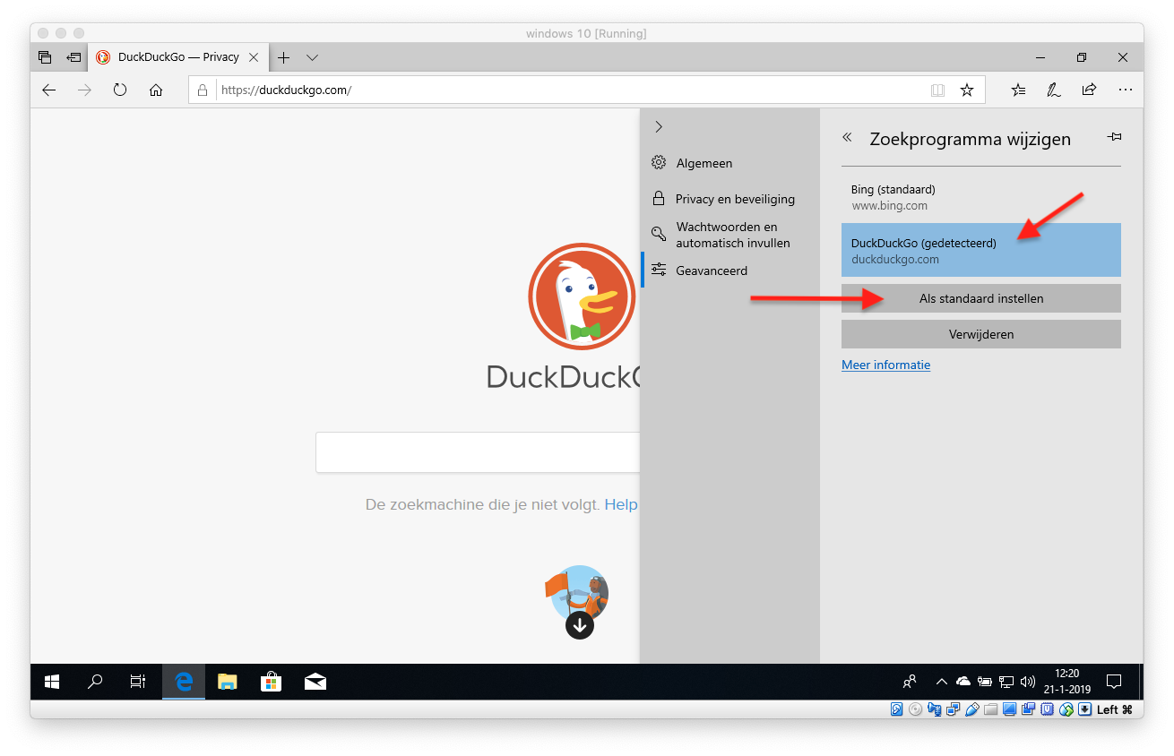 C. Stel DuckDuckGo in als zoekmachine in Edge