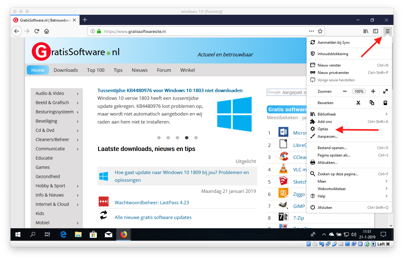 1. Ga naar drie streepjes menu rechtsboven en kies Opties