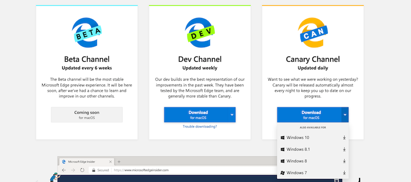 Download een testversie van Edge-Chromium voor Windows 10, 8.1, 7 en macOS