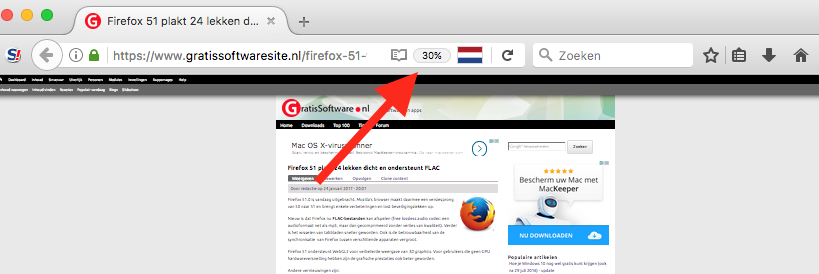 - Als een gebruiker in- of uitgezoomd is op een website, dan is een zoomknop zichtbaar in de adresbalk (die je weer naar 100% brengt als je erop klikt).