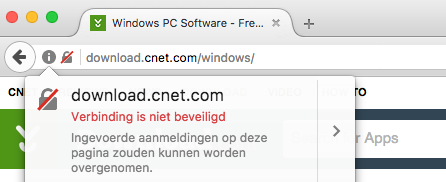 - Als een inlogpagina op een website geen https-beveiliging heeft dan wordt een waarschuwing getoond.