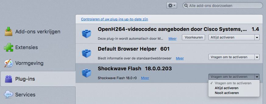 Flash, Java of andere plugins uitzetten of alleen op aanvraag activeren (click to play) in Google Chrome, Firefox, Internet Explorer, Safari en Opera