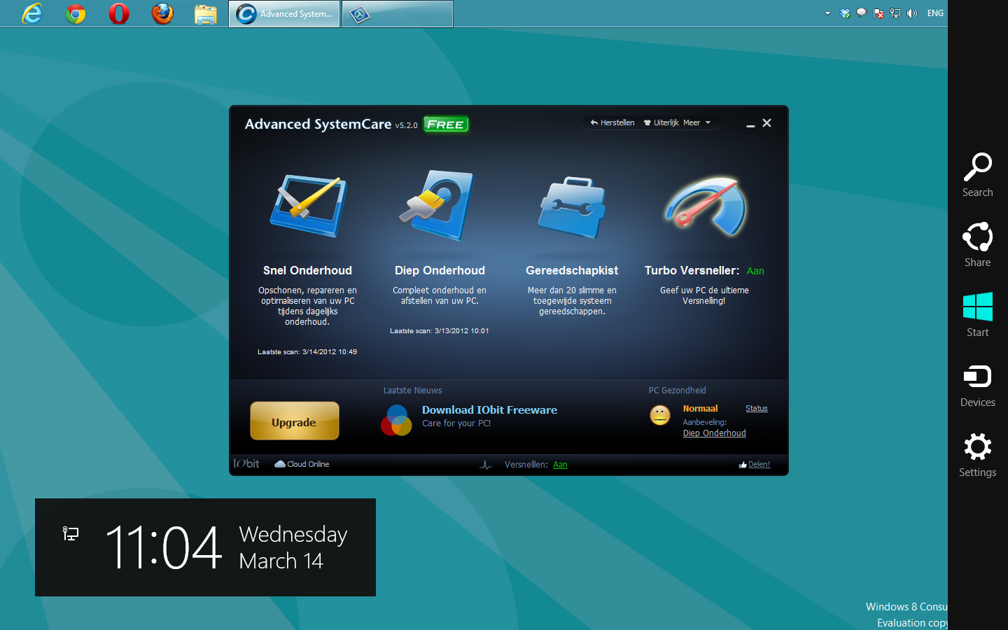 Door dit allround karakter kwam ASC vroeger niet altijd even goed uit de verf, maar de ontwikkelaars zijn er steeds beter in geslaagd om van Advanced SystemCare een onmisbaar instrument te maken voor het onderhoud en de optimalisatie van je pc. Een uitgebreider programma dan Advanced SystemCare zal moeilijk te vinden zijn. Advanced SystemCare 5.2 is bovendien te gebruiken op Windows 8 Consumer Edition.