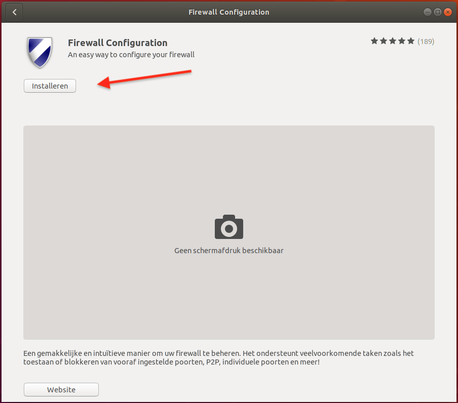 3. Klik Installeren/Install bij Firewall Configuration (de andere naam van Gufw) en toets je wachtwoord in