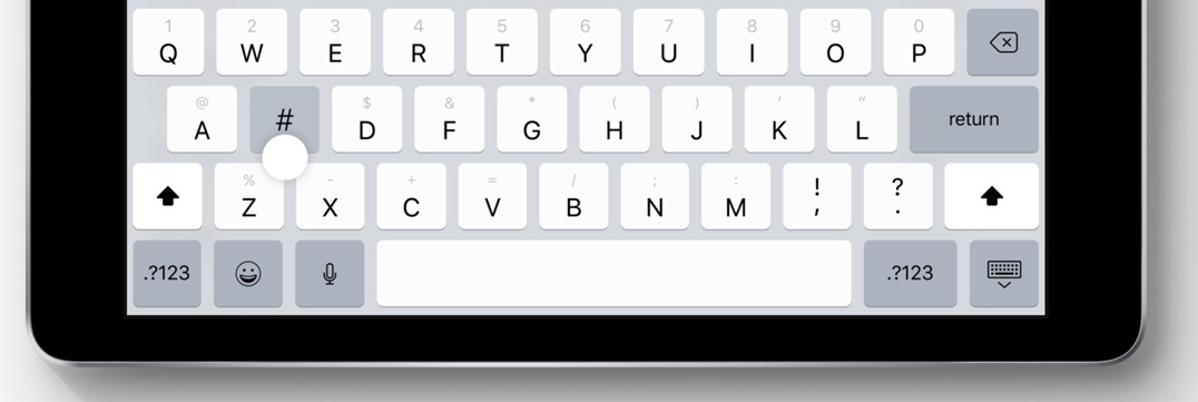 - Het toetsenbord op iPad is vernieuwd: je hoeft niet meer te wisselen van toetsenbord voor leestekens, symbolen en cijfers, ze staan nu allemaal op hetzelfde toetsenbord waardoor je sneller kunt typen. Door een sleepbeweging op de toets te maken kunnen je de tekens typen. Ook kun je nu handiger met één hand typen door de optie 'typen met één hand' te selecteren.