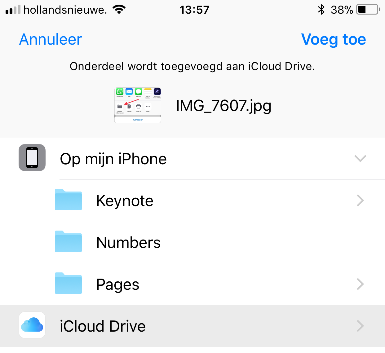 - Er is - eindelijk - een Bestanden-app, zodat je makkelijk bij je documenten kunt. Met de bestanden-app kun je bladeren in bestanden op je iPhone en iPad, maar ook in iCloud, DropBox, Google Drive enzovoort. Handig is ook dat je bestanden en documenten nu vanuit elke app kunt opslaan via het deelmenu (blokje met pijltje omhoog) in iCloud (de functionaliteit om ook op je iPhone of iPad op te slaan zat in de bèta-versies maar is helaas verwijderd uit de officiële uitgave van iOS 11. Wie weet in een latere versie weer...).