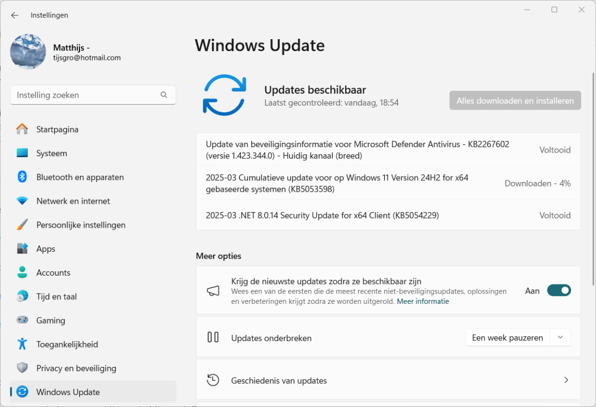 Ook bij mij geeft de Windows10 update (KB5053606 grote problemen). Heb al 3 keer geprobeerd te installeren, maar krijg iedere keer een foutmelding. Geloof, als ik de reacties hierboven zie, dat ik deze update maar beter kan overslaan.