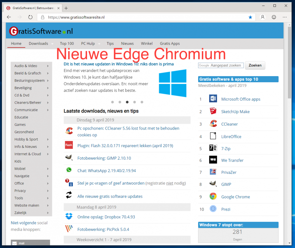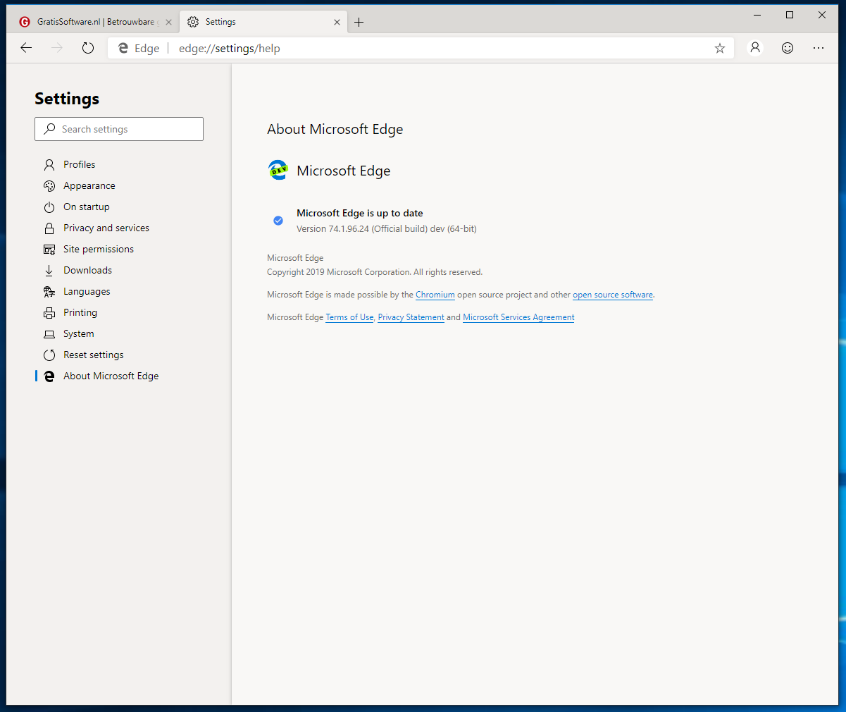Het voordeel van de nieuwe Edge Chromium - die zoals gezegd nog in het proefstadium verkeert - is dat de browser behalve voor Windows 10 op den duur ook beschikbaar zal komen voor Windows 8.1, Windows 7 en macOS. Voorlopig kun je Edge Chromium alleen downloaden voor Windows 10.