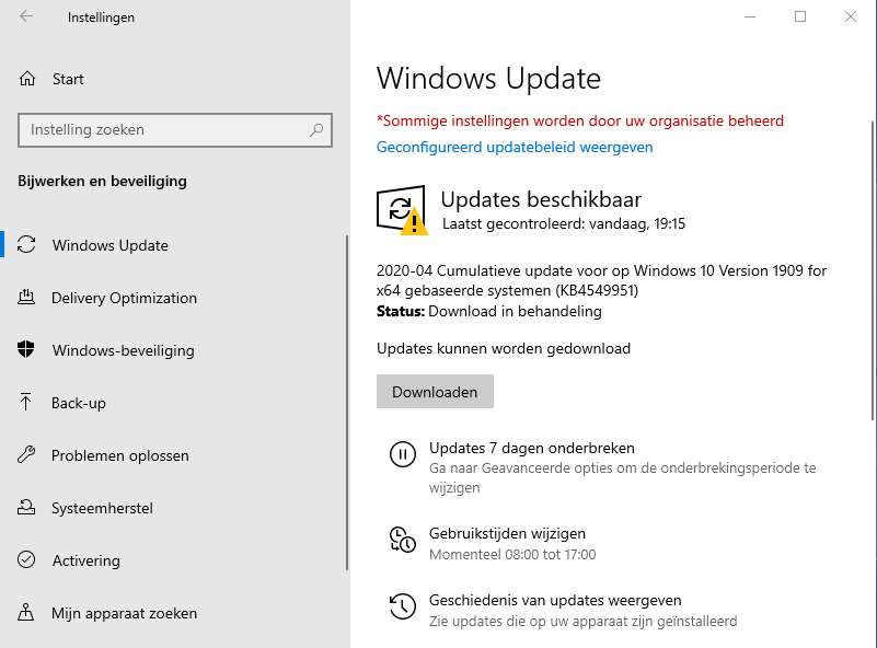KB4549951 in 12 minuten erop, vooralsnog zonder problemen.