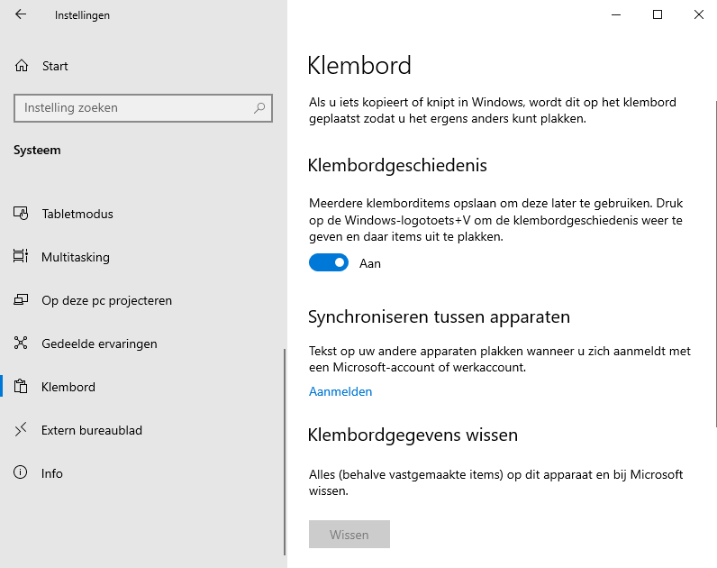 Uitleg Windows 10 Klembord met meerdere items op meerdere apparaten