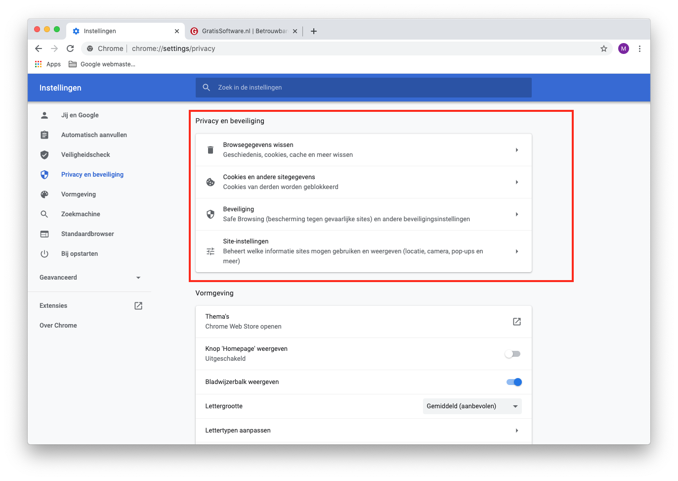Verder is onder het kopje Privacy en beveiliging het nodige verbeterd. Zo zie je nu Browsegegevens wissen, Cookies, Beveiliging en Site-instellingen staan.