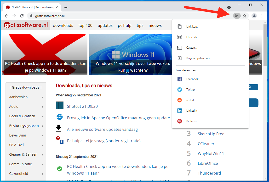 Een nieuwe functie, die je nog wel zelf moet aanzetten, is de deelknop (Share Hub) in de adresbalk van Chrome.