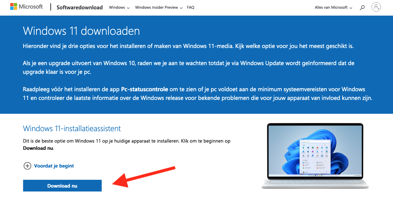 2. Binnenhalen met Windows 11 Installatie-assistent of Media Creation Tool of ISO