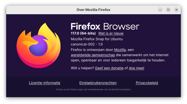 Firefox 117 is een update die te downloaden is voor Windows, macOS, Linux, Android en iOS. In de komende dagen wordt je browser automatisch bijgewerkt. Je kunt ook zelf updaten onder het driestreepjes-menu | Help | Over Firefox.