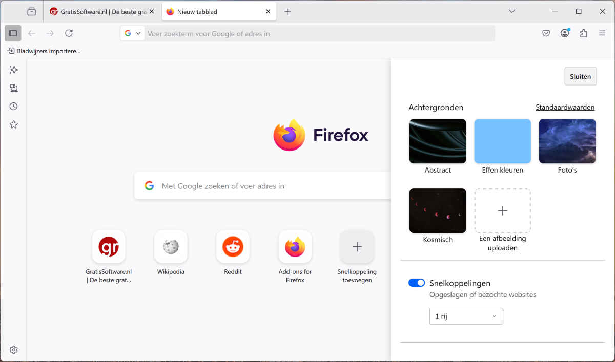 Een leuke nieuwe functie in Firefox 139 is de mogelijkheid om zelf een achtergrondafbeelding voor je startpagina/nieuw tabblad-pagina te kiezen. Je kunt eigen foto's instellen als achtergrond om een persoonlijker resultaat te krijgen. Ook kun je nog meer kleuren kiezen.