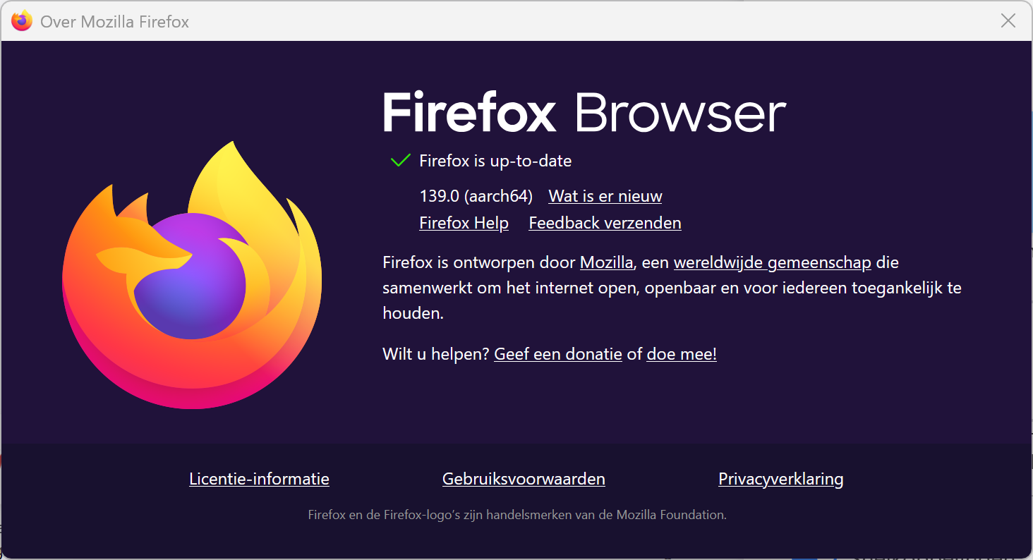 Firefox 139 is te downloaden voor Windows, macOS, Linux, Android en iOS. In de komende dagen wordt je browser automatisch bijgewerkt. Je kunt ook zelf updaten onder het driestreepjes-menu | Help | Over Firefox.