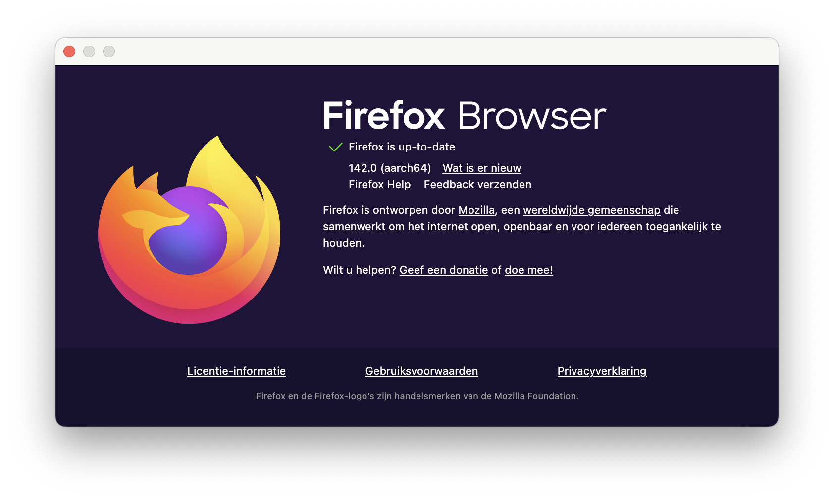 Firefox 142 is te downloaden voor Windows, macOS, Linux, Android en iOS. In de komende dagen wordt je browser automatisch bijgewerkt. Je kunt ook zelf updaten onder het driestreepjes-menu | Help | Over Firefox.