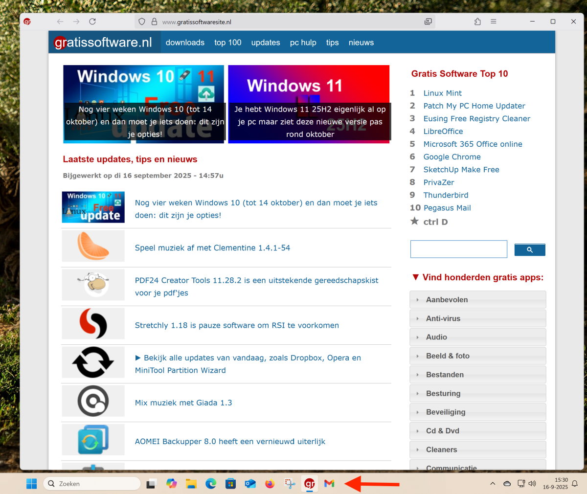 In de afbeelding hierboven zie je GratisSoftware.nl als web app draaien in Firefox. Op de taakbalk zie je de web app icoontjes van Gmail en GratisSoftware.nl die we hebben vastgemaakt.