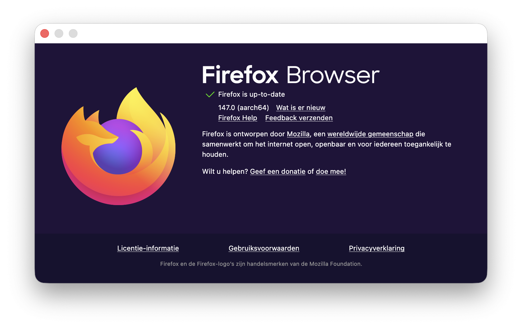 Firefox 147 is te downloaden voor Windows, macOS, Linux, Android en iOS. In de komende dagen wordt je browser automatisch bijgewerkt. Je kunt ook zelf updaten onder het driestreepjes-menu | Help | Over Firefox.