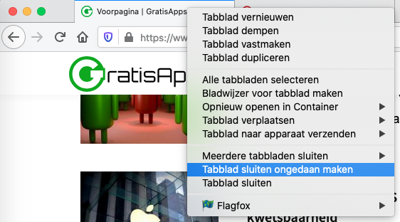 In Firefox 78 is in het contextmenu voor tabbladen (rechtsklikken op tab) een item toegevoegd voor Tabblad sluiten ongedaan maken.
