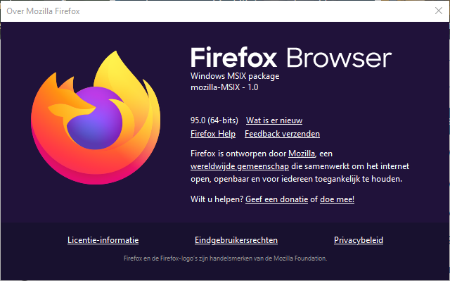 Firefox 95 is een update die te downloaden is voor Windows, macOS, Linux, Android en iOS. In de komende dagen wordt je browser automatisch bijgewerkt. Je kunt ook zelf updaten onder het driestreepjes-menu | Help | Over Firefox.