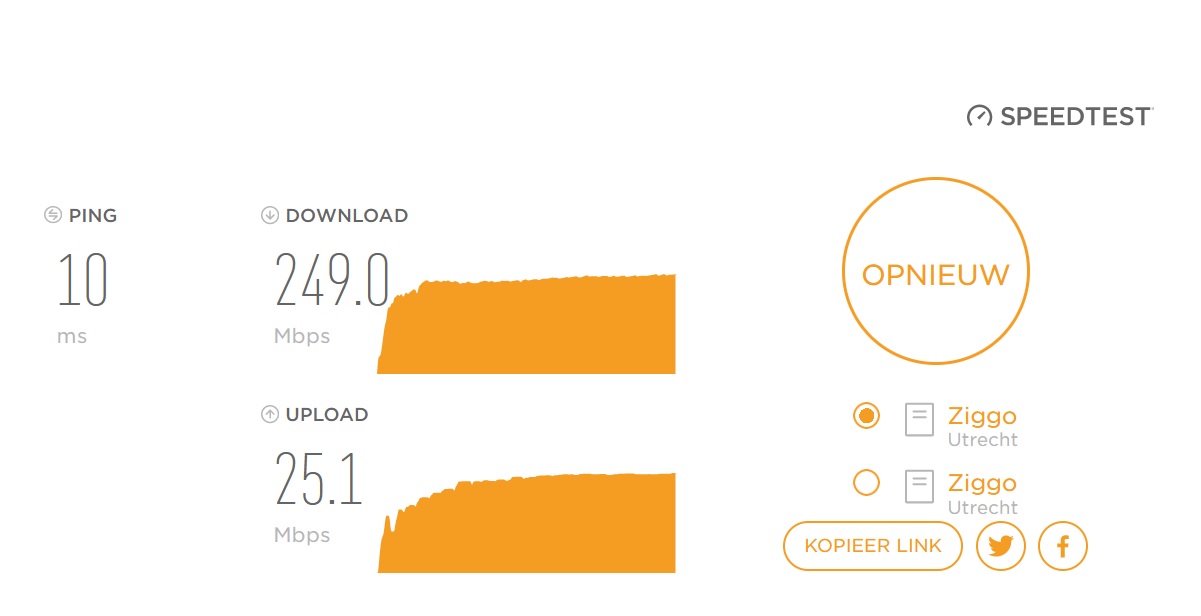 245 Mbps en dit was 200 Mbps met een laptop.. ik krijg waarvoor ik betaal bij Ziggo