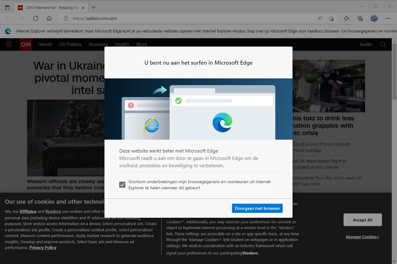 Nadat Internet Explorer definitief verdwenen is kun je overigens nog wel de IE modus in Microsoft Edge gebruiken om verouderde websites te bekijken.