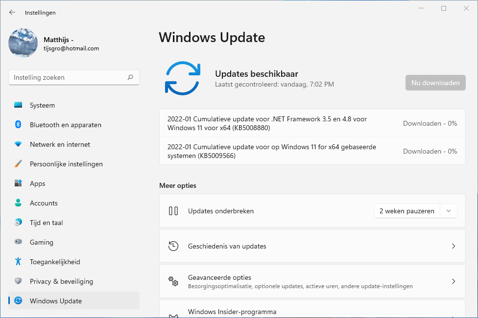 Windows 11 (21H2) update KB5009566 gisteren via Windows Update probleemloos geïnstalleerd.