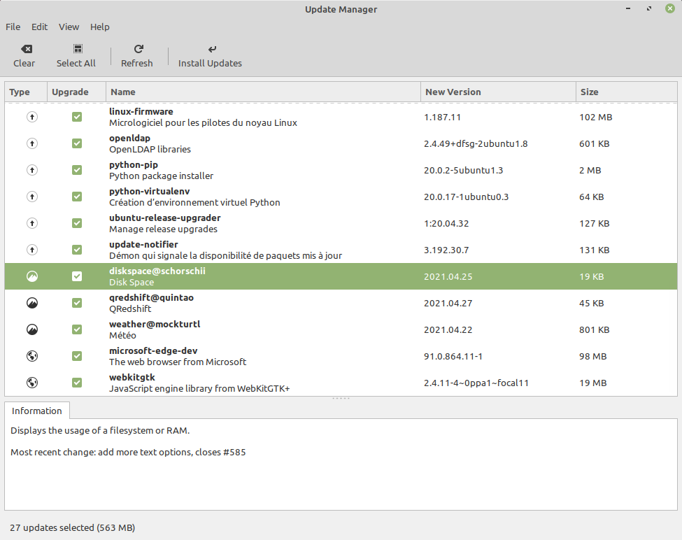 Nieuwe in Linux Mint 20.2: update manager uitgebreid