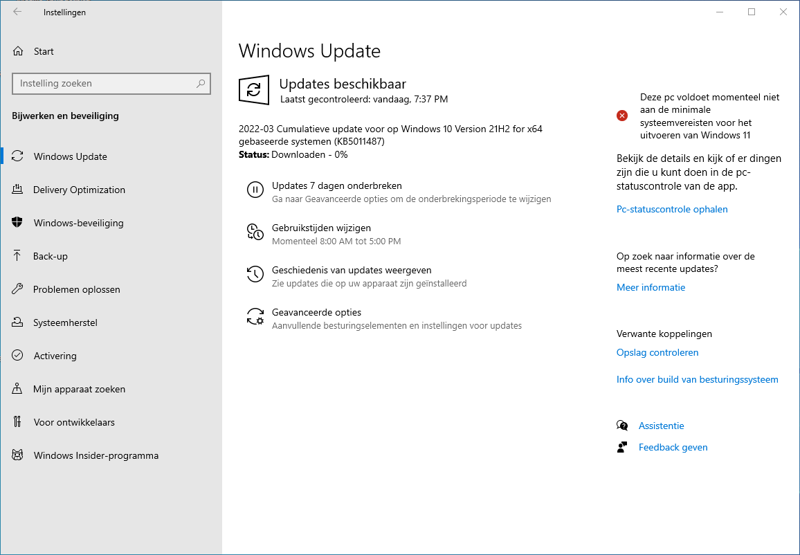instaleren ging moeizaam KB5011487. tussentijds 2x gestopt.
