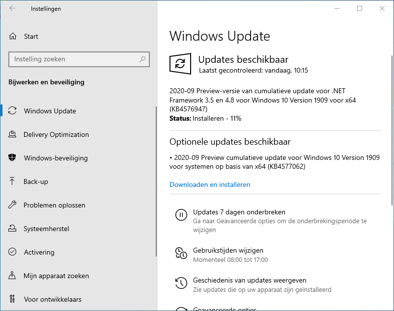 Ook kun je de Cumulative Update Previews KB4576945 en KB4576947 voor het .NET Framework aangeboden krijgen. Deze preview wordt vreemd genoeg wel automatisch geïnstalleerd als je zoekt naar updates.