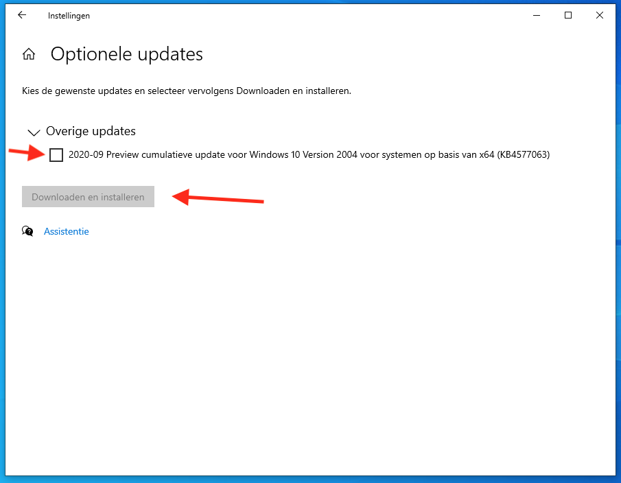 Zet een vinkje bij de update en klik op Downloaden en installeren: