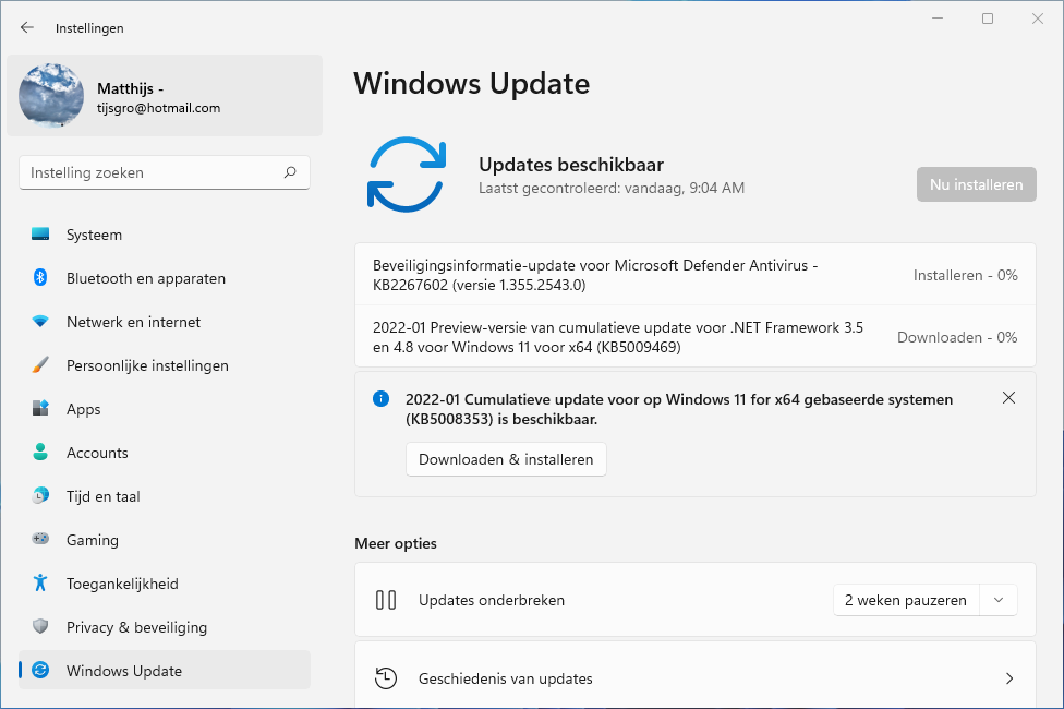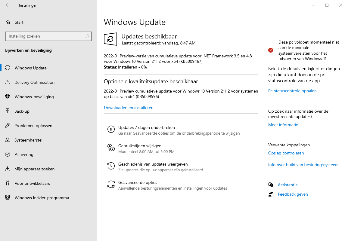 Behalve de preview updates krijgen Windows 10 en 11 ook preview-versies van updates voor het .NET framework - die overigens vreemd genoeg wel altijd automatisch geïnstalleerd worden. KB5009469 voor Windows 11 en KB5009467 voor Windows 10.