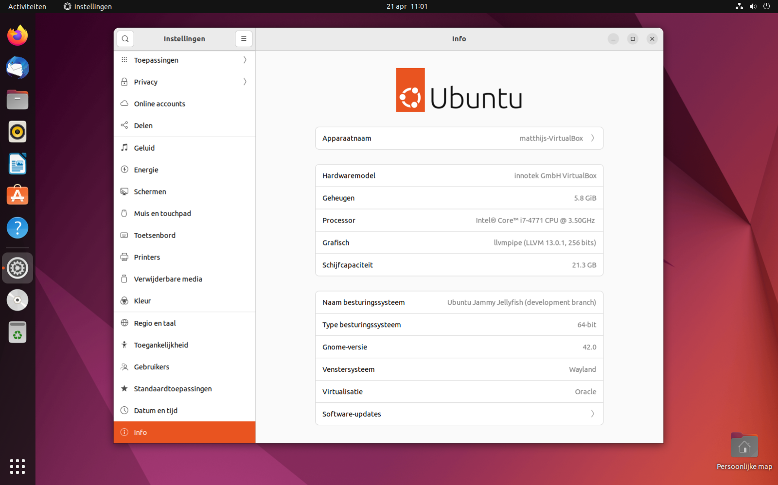 Verder heeft Ubuntu 22.04 nieuwe versies van de Linux Kernel en Gnome Desktop aan boord: Linux Kernel 5.15 en Gnome 3.42 met alle verbeteringen en vernieuwingen.