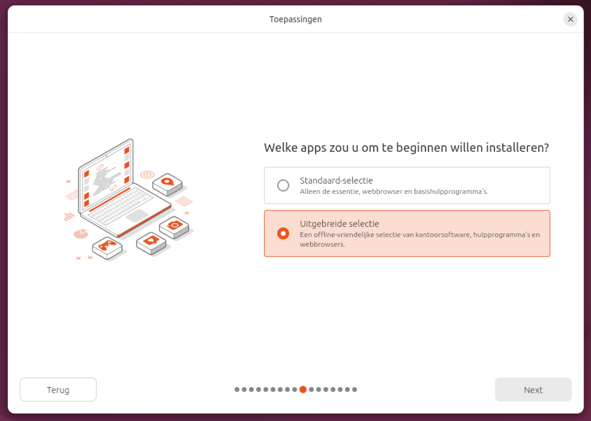 Kies voor Uitgebreide selectie van apps tijdens de installatie