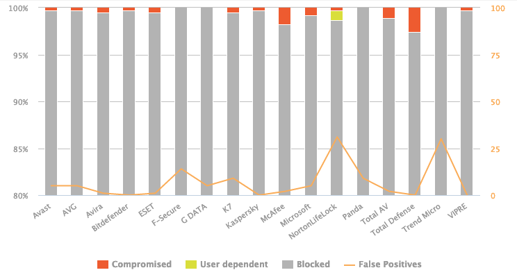 AV Comparatives testte in juli en augustus 17 virusscanners op geboden bescherming tegen 380 schadelijke websites met malware en drive-by downloads. Ook werd er naar vals positieven (vals alarm) gekeken.