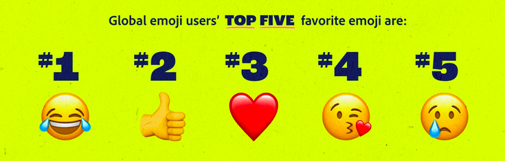 De populairste emoji is huilen van het lachen. Volgens Adobe, dat het gebruik van emoji onderzocht, zijn dit de vijf populairste emoji: