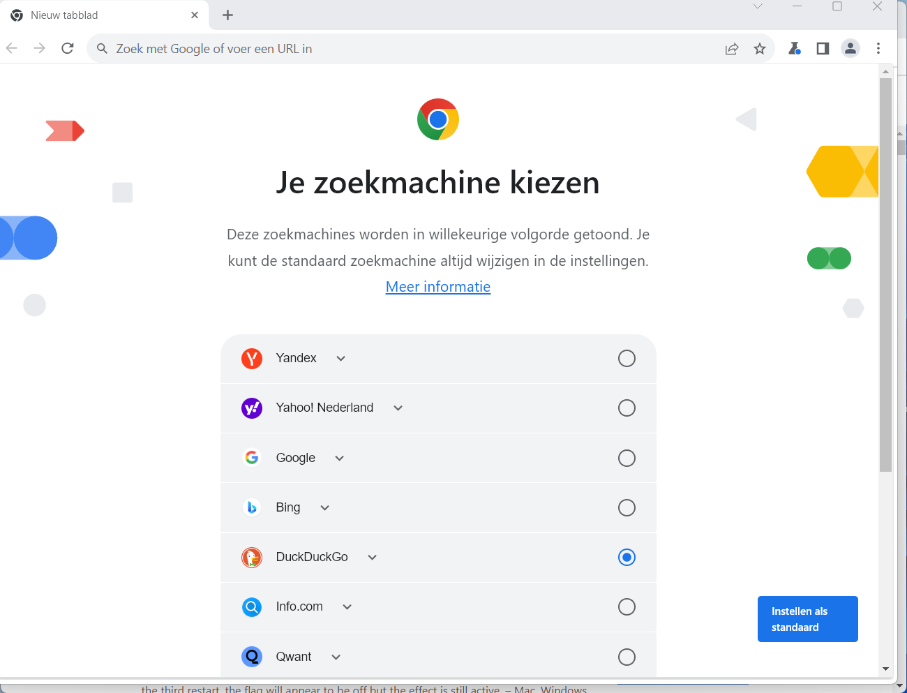 Je kunt dan kiezen uit verschillende zoekmachines in Google Chrome, waaronder (natuurlijk) Google, Bing, Yahoo! en DuckDuckGo en kleinere zoekmachines als Qwant, Ecosia, Brave Search en veel meer. Of andere browsers als Firefox en Edge ook dit keuzescherm moeten tonen is ons niet bekend.
